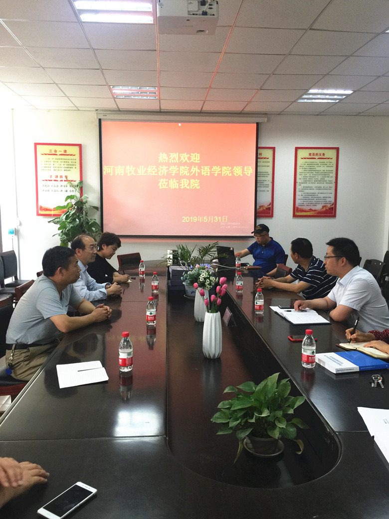 调研组首先来到河南工程学院外语学院。外语学院书记王志伟和院长赵涛对我院调研组的到来表示热烈欢迎,赵院长介绍了河南工程学院外语学院发展概况、学科建设、师资队伍建设、办学特色、校企合作育人等,着重介绍了成功申办翻译本科专业的经验,和两年来翻译专业的人才培养情况。翻译专业立足校本特色,在服务“一带一路”、中原经济区和郑州航空港经济区等国家战略,服务区域经济社会发展和服务学校应用型本科转型发展诸方面具有独特优势。