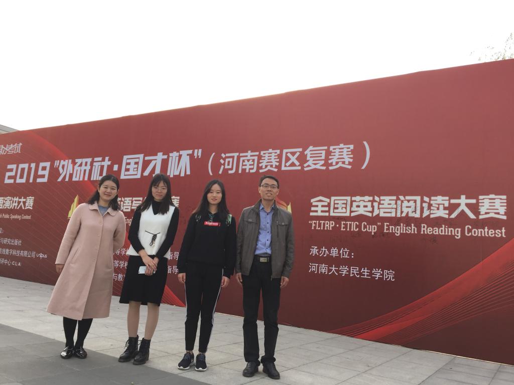 11月2—3日,2019“外研社杯”全国英语演讲、阅读、写作大赛河南赛区复赛在河南大学民生学院举办,我校选派七名选手参加比赛,天天干夜夜操邹姝琪同学荣获英语演讲大赛一等奖,杨嘉昕同学荣获英语阅读大赛一等奖。