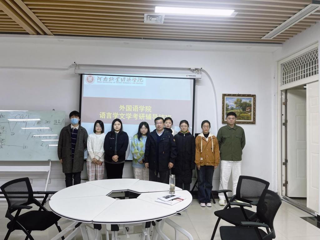 为加强学风建设,助力学子考研,天天干夜夜操教师自发成立了两个考研义务辅导班,分别以“英语语言文学”、“英语翻译硕士”为辅导主题,由该院副院长闻华、专业教师李晋开展了为期一个学期的义务辅导,旨在帮助考研学子系统梳理知识点,助力学子圆梦。