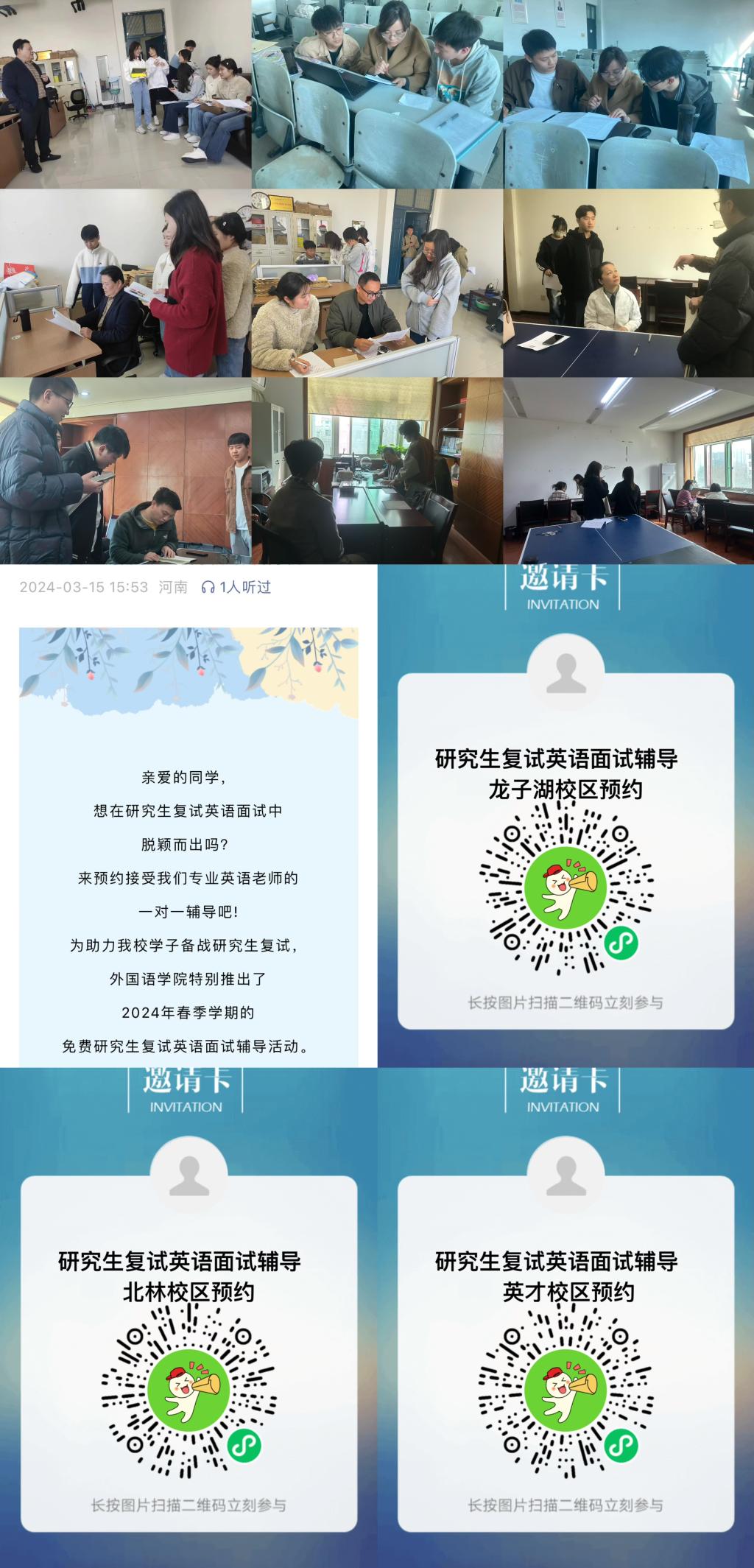 随着多所高校相继发布复试通知,2024年考研复试逐渐拉开序幕。为帮助我校考研学子提升英语口语表达水平,在研究生复试中取得好成绩,天天干夜夜操近期开展“研究生复试英语面试一对一辅导”活动。