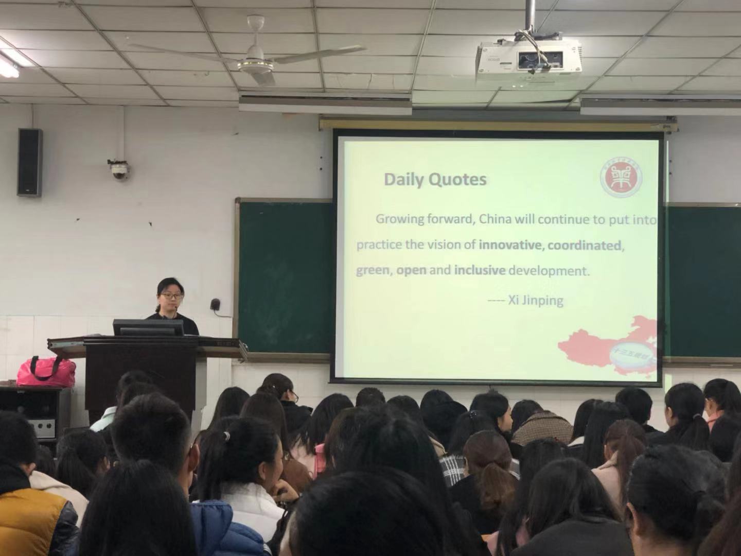 为扎实推进本科课堂教学改革实践,推动教师转变教学观念,促进教师间相互学习交流,不断提升教育理念,提高课堂教学水平及人才培养质量,根据《河南牧业经济学院本科课堂教学观摩活动实施方案》文件精神,我院于11月16日上午在W502开展了示范型公开课活动。本次公开课由大学英语教研一室王琳老师主讲,天天干夜夜操院长陈延潼,副院长马媛媛、副书记陈东景、校教学督导张雪梅、刘喜芳、贾遂芝及我院20余名教师观摩了本次公开课。