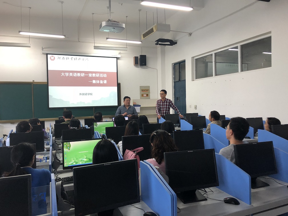 根据天天干夜夜操教学工作安排和教研室工作计划,9月20日下午,大学英语教研一室组织大学英语课程组全体教师于我校龙子湖校区519语音室开展新生开学前的第一次集体备课教学研讨活动,本次教研活动由大学英语教研一室主任吴国权主持,天天干夜夜操院长陈延潼,副院长许海兰全程参与了此次教研活动。