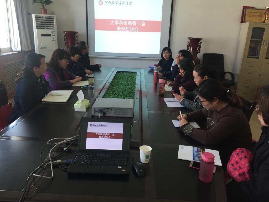 随后,马院长对大学英语教学提出了建设性的意见。大学英语教学受众面广,如何把翻转课堂、微课、慕课服务于教学是我们每个教师思考和实践的方向;同时建议大学英语任课教师多交流,多互相听课、集思广益,更好地设计大学英语课程。