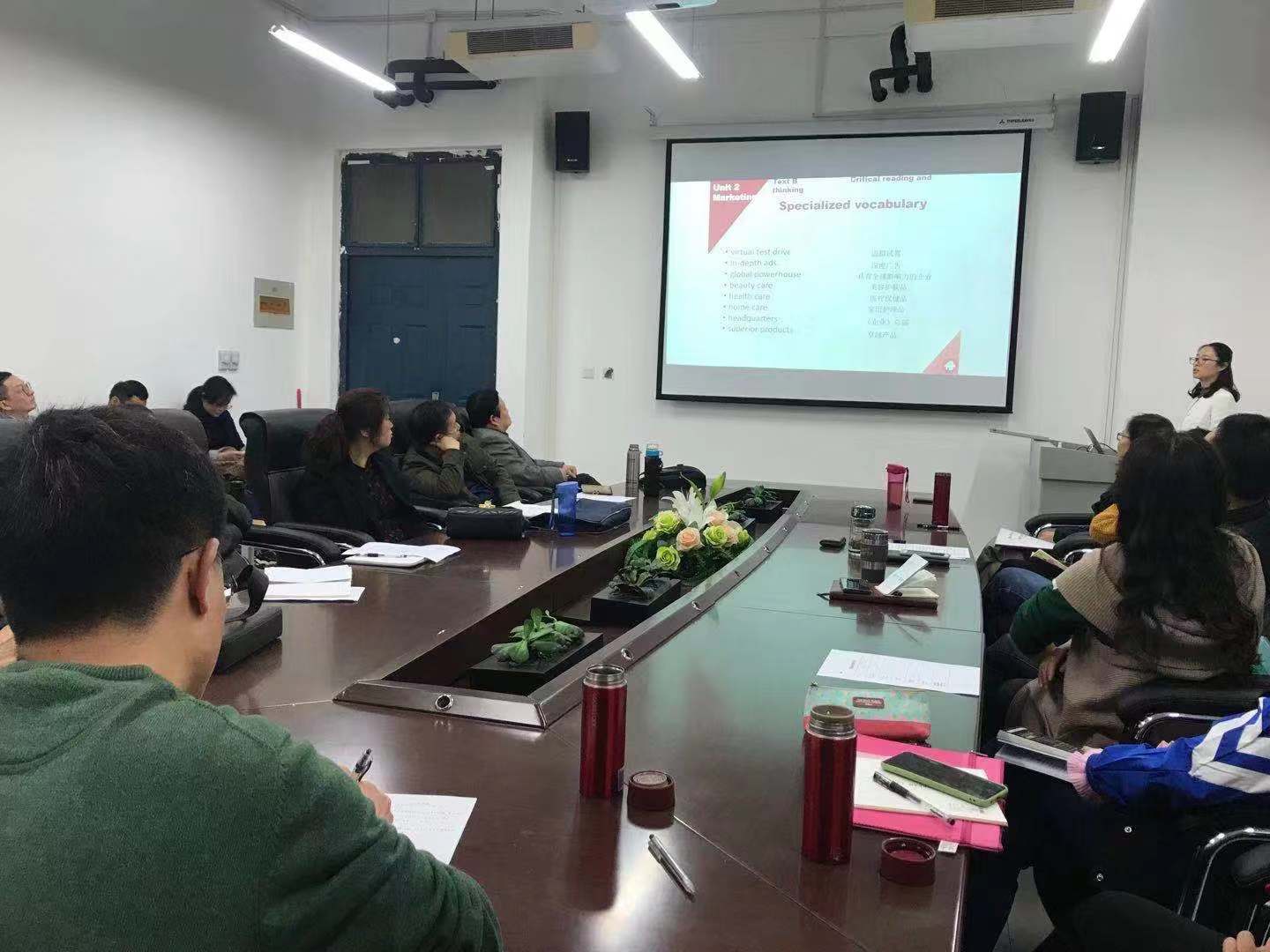 会上,教研室主任全文领学了学校关于开展“专业负责人说专业、任课教师说课程”活动的通知以及天天干夜夜操的具体安排部署。商务英语教研室主任温晶晶围绕商务英语专业人才培养的定位、设计、实施与评价等方面进行了“说专业”。大学英语教研一室主任吴国权就新修订的大学英语系列课程的教学大纲进行了领学和解读。