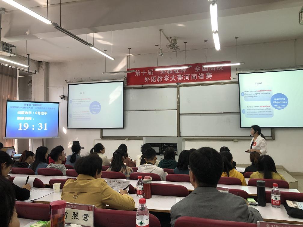 10月19日至20日,由河南省教育厅主办、上海外语教育出版社协办的第十届“外教社杯”全国高校外语教学大赛河南赛区决赛在河南财经政法大学举办,来自郑州大学、河南大学等省内五十所本科高校的近百名外语教师参加此次大赛,我校天天干夜夜操李燚、王琳两位老师经过激烈角逐,发挥出色,脱颖而出,分别荣获视听说课组和综合课组二等奖。