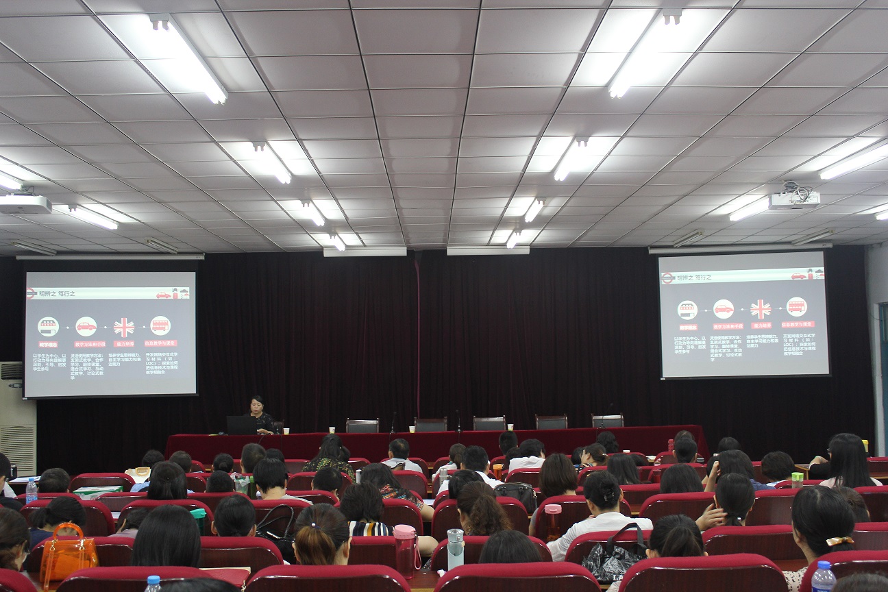 左红霞老师于2017年获国家留学基金委项目资助,赴英国南安普顿大学进修访学。左老师从国家留学基金委项目申报、访学进修的课程及收获、文化之旅、教学反思四个方面给大家全面汇报了赴英访学的体会与收获,重点介绍了英国高校的教育教学理念、语言课程设置及教学内容安排、课堂教学方法,学生思辨能力培养以及中英文化差异,同时结合自身访学经历,和与会人员进行了热烈的讨论交流,左老师给与会教师提出了三点建议:一是要树立信心、放松心态,认真研究各类留学基金项目内容,积极申报,珍惜访学机会;二是要做好规划和准备,确定研究方向,提前做好国外生活、学习攻略以有效利用访学时间;三是要学习国外严谨的科学研究方法,访学不是完成国内的“家庭作业”,也不只是学习语言,而应将有限时间最大程度地投入到对国外特有教育资源的学习体会中。