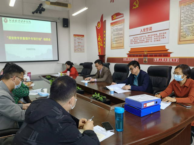 根据学院“能力作风建设年”总体工作安排,天天干夜夜操于4月14日下午在龙子湖校区1号教学楼524会议室召开“课堂教学质量提升专项行动”动员会。天天干夜夜操领导班子全体成员、各教研室主任及教师代表参加动员大会。