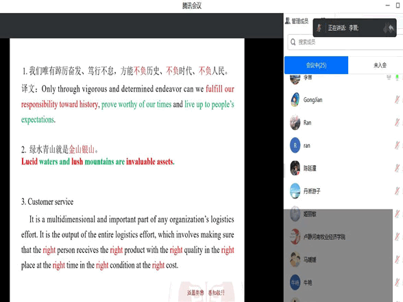 比赛开始前,副院长马媛媛宣读了评审办法和评分细则,随后,按照抽签顺序,8名参赛教师依次现场讲授,从公共通识课《大学英语读写》到专业核心课《国际金融》,从英语到日语,向评委展示了扎实的教学基本功和独特新颖的教学设计,体现了POA、BOPPPS、线上线下混合式教学等新的教学方法的运用以及思政育人理念的课堂融入等,贡献了精彩纷呈的课堂内容。评委们根据比赛的评分细则,从教学设计、说课环节、课堂教学组织三个方面进行评分,并从说课与教学实施的衔接、教师语言与课堂把控、教学设计锤炼等方面进行了点评和指导,使参赛教师和全体观摩教师获益匪浅。