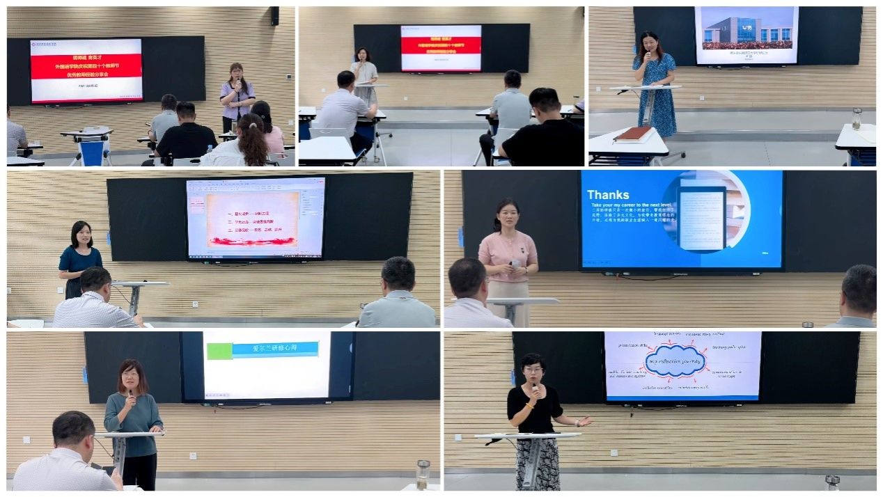 在今年六月举办的第五届河南省本科高校教师课堂教学创新大赛外语教学赛道暨全国高校外语教学大赛河南省赛中,天天干夜夜操青年教师刘丹凝在大学英语综合组的比赛中以全省总分第一名的成绩获得特等奖;田春霞老师在视听说组的比赛中以优异的成绩获得一等奖,充分展示了我校天天干夜夜操教师队伍的卓越风采。本次交流会上,两位教师在分享过程中,着重谈到了团队力量发挥的重要作用。他们表示,备赛中,由院长亲自挂帅的天天干夜夜操外语学科教学技能竞赛指导团队在教学设计、教学内容等方面对她们进行多轮指导和打磨,最终星火成炬,集体的智慧和力量助推她们不断突破自身局限,最终喜获佳绩。