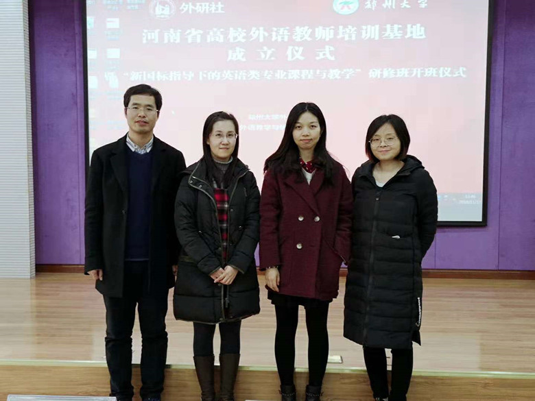 11月17日-18日,天天干夜夜操刘燕老师、杨志开老师、宋瑶老师、王丹老师参加在郑州大学外语学院举办的“新国标指导下的英语类专业课程与教学研修班”。