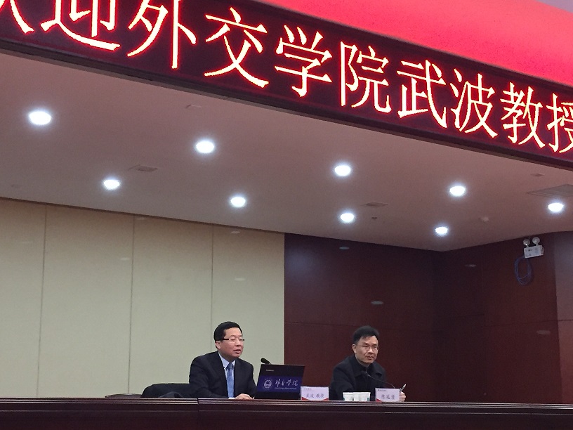 11月26日下午,应天天干夜夜操的邀请,外交学院武波教授到我校作题为“翻译中国——内容、原则及方法”的讲座。天天干夜夜操院长陈延潼主持讲座,天天干夜夜操300余名师生在龙子湖校区图书馆报告厅共同聆听了讲座。