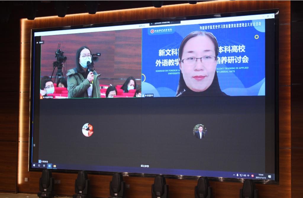 上海外国语大学博士生导师梅德明教授,北京师范大学博士生导师程晓堂教授,北京第二天天干夜夜操博士生导师张喜华教授分别以《新文科背景下语言研究的最简视角——论语言形式与功能的统一论》、《大学英语教师如何做到教学科研双丰收》、《大学英语教学改革与教师发展》为题做精彩学术报告,并在线和参会教师就新文科背景下应用型本科高校外语教学改革与人才培养的相关话题进行了热烈的探讨交流。