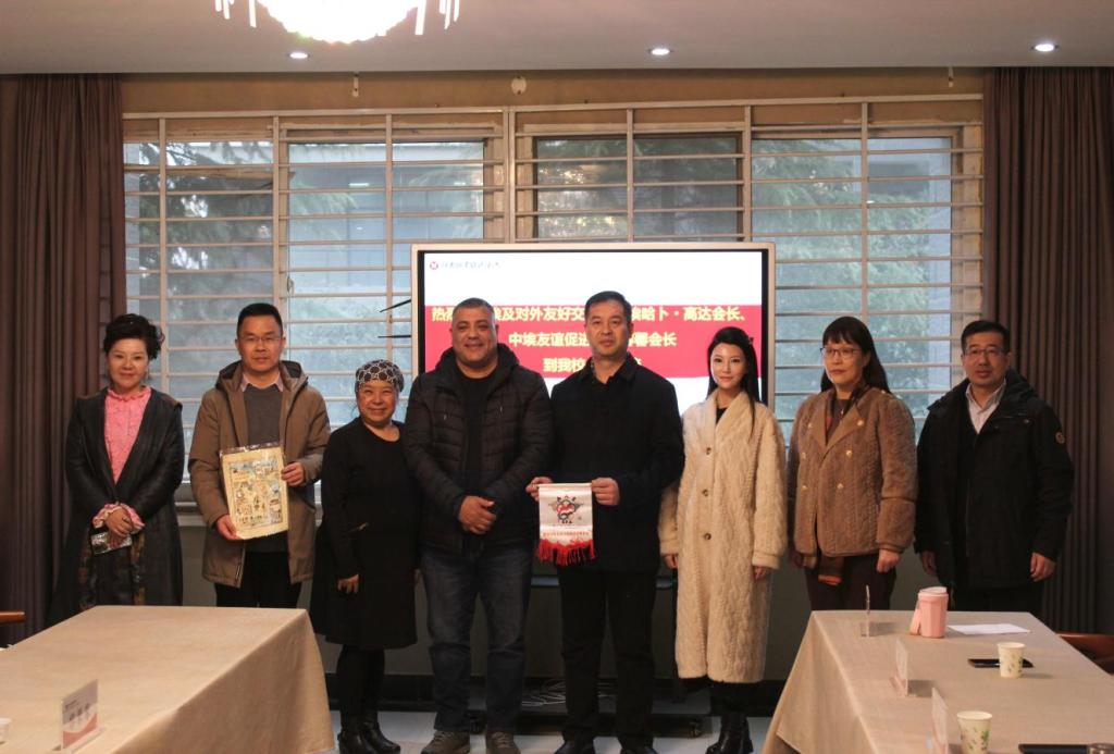 埃哈卜·高达会长介绍了埃及对外友好交流协会基本情况,以及开展中埃友好交流活动所做的工作和取得的成绩。埃哈卜·高达会长对我校的教学环境、教学设备及学生素养表示高度赞许,希望以此次访问为契机,积极推动双方在教育文化领域的交流与合作,推动双方教育文化的共同发展。