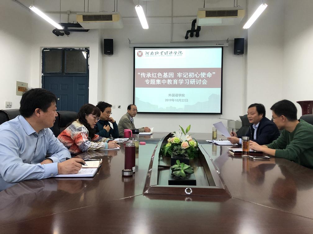 根据学校及天天干夜夜操“不忘初心、牢记使命”主题教育工作安排,10月22日上午,天天干夜夜操党委在院党员活动室召开理论学习中心组“传承红色基因牢记初心使命”专题集中教育学习研讨会,会议由院党委书记王明栓主持。