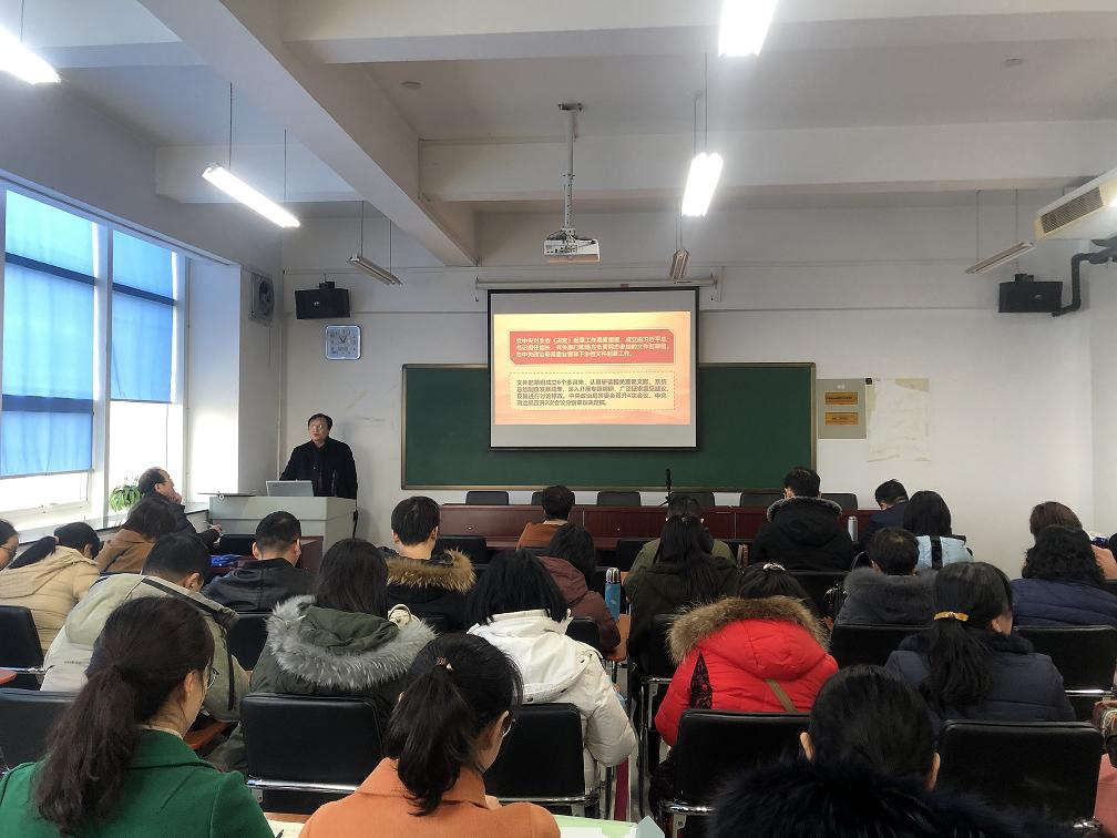 为了深入学习宣传贯彻党的十九届四中全会精神,根据校党委“不忘初心、牢记使命”主题教育工作安排,天天干夜夜操于12月5日下午在龙子湖校区会议室召开党的十九届四中全会精神宣讲会。宣讲会由天天干夜夜操党委书记王明栓主讲,全体教职工参加会议。