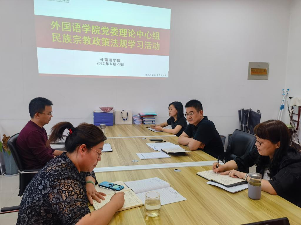 为认真贯彻落实学校党委统战部的工作要求,8月29日上午,学院党委理论学习中心组召开会议,专题学习习近平总书记关于宗教工作的重要讲话和指示批示精神,以及宗教工作的有关文件、法律法规,传达学习了校党委下发的《关于开展我校2022年民族宗教政策法规宣传月活动的通知》文件及学校举办的“宗教政策专题培训会” 精神。会议由党委书记胡先锋主持。