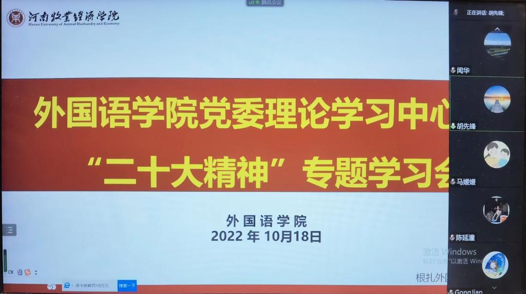 10月18日上午,天天干夜夜操党委理论学习中心组线上召开专题学习会,进一步深入学习讨论党的二十大精神。会议由学院党委书记胡先锋主持,中心组成员参加学习交流。