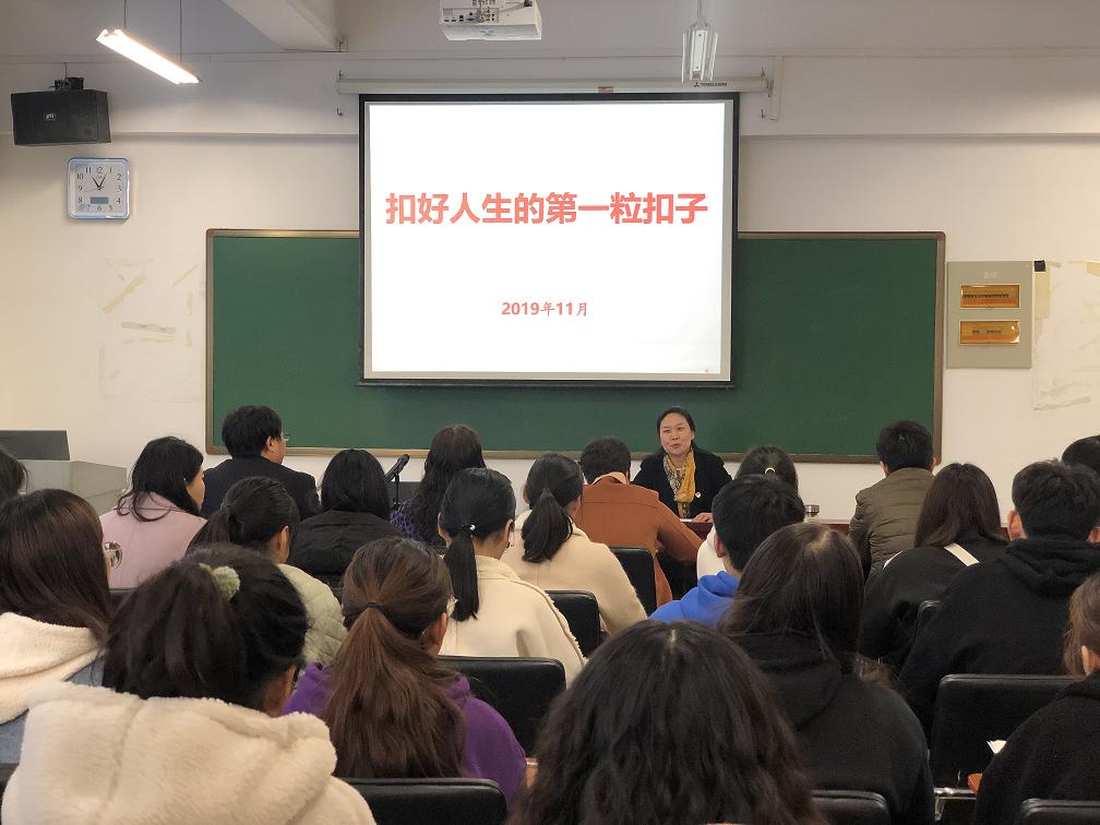 按照学校“不忘初心、牢记使命”主题教育的总体安排,11月21日下午,副校长杨志清在龙子湖校区C517为天天干夜夜操师生上了题为《扣好人生的第一粒扣子》的专题思政课,学院领导班子、科级以上干部、辅导员和全体学生干部共同聆听了讲课,专题课由学院党委书记王明栓主持。