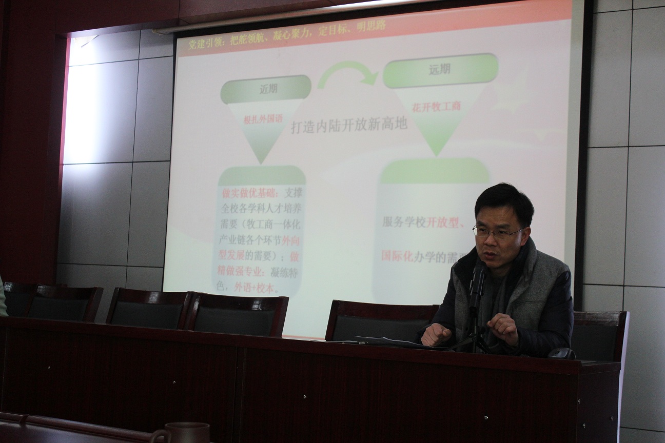 大会首先由院长陈延潼做天天干夜夜操2018年度工作报告,陈院长引用爱因斯坦的“Learn from Yesterday,Live for Today, Hope for Tomorrow”(昨日为师,今日为生,明日为望)做为报告题目,全面回顾了自天天干夜夜操成立之后,以“内抓融合、外塑形象”为工作基本遵循,充分发挥党建把舵领航、凝心聚力的引领作用,凝练外语学科建设方向,强基固本稳中求进,多措并举促科研;学生工作注重思想引领,突出特色、搭建平台,优化学风育人才;人才工作外引内培,克坚攻难。陈院长以“四个回归”展望了2019年天天干夜夜操的工作:回归初心,党建引领,抓深度融合,促优质发展;回归梦想,学科为体、专业为用,打响牧院外语品牌;回归本分,打造优质外语教师队伍,服务学校发展;回归常识,建设外语金课,助力学生成才。接着院分工会福利委员巩坚向大会汇报了2018年分工会会费收支情况。