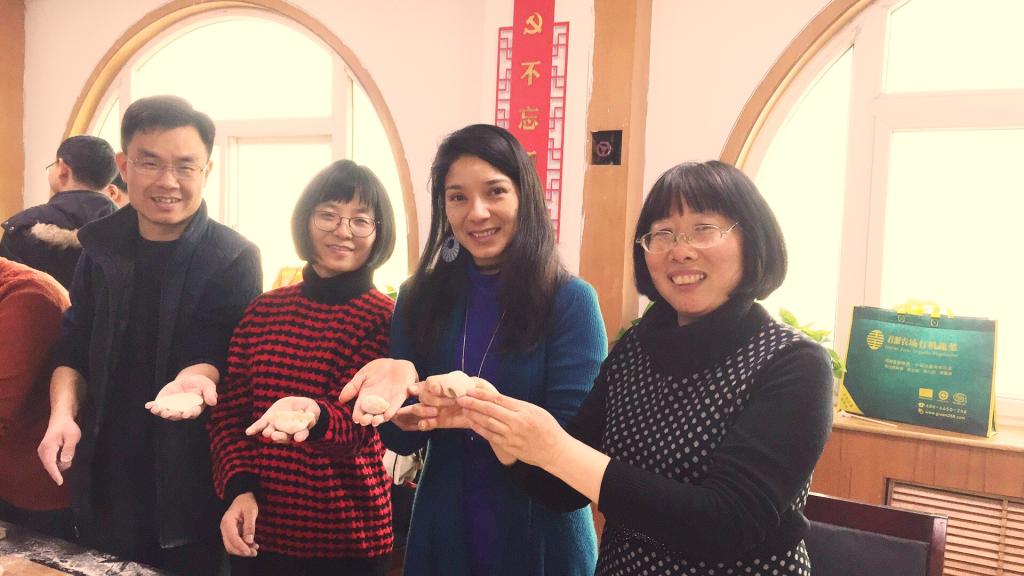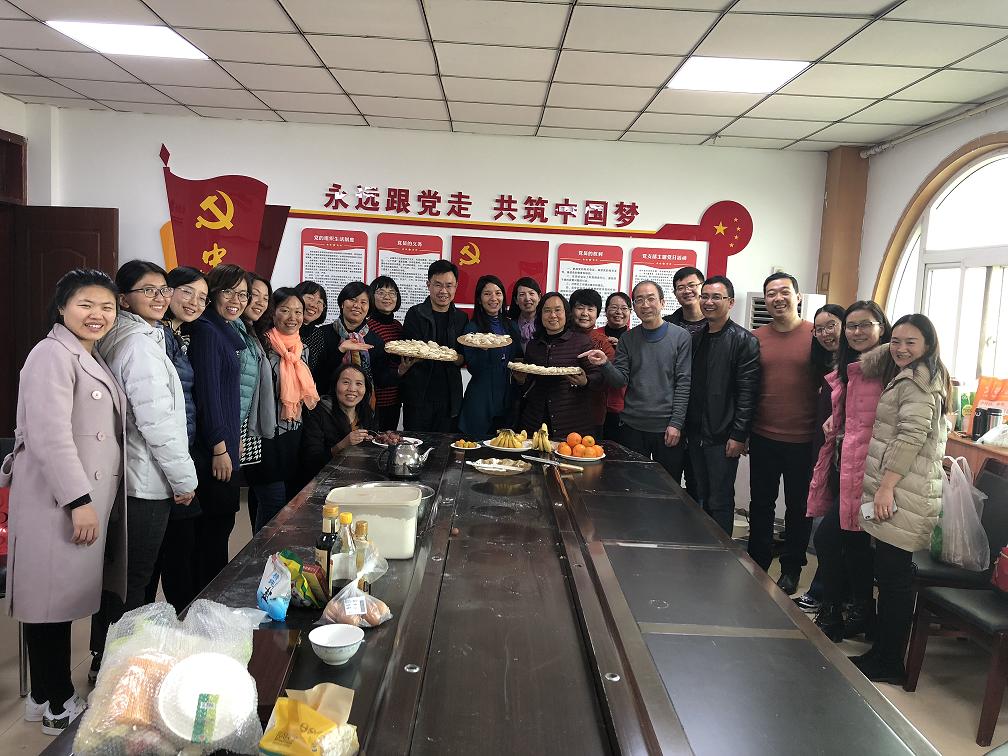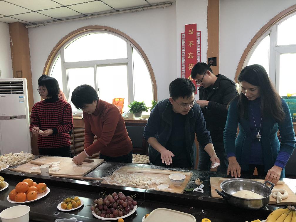 高尔基说:“工作愉快,人生便是天堂。”幸福是一种心灵的体验,要用心去感受,要用情去触摸。幸福是人生的主题,只有感到幸福的人,其人生才是充满快乐和阳光的,体验幸福就是一种快乐。教师的职业幸福感不只是生活上的满足,更在于追求幸福教育,这也是教育所追求的目标。冬至来临,按照中国传统习俗,当天要吃饺子。为了让教职员工和外籍教师在工作之余,体验传统节日文化的魅力和快乐,学院分工会特别请张明梅老师提前为大家准备了充足的荤、素两种馅料,教职工分为四个组,没有课和上完课赶到的老师们,有的擀片、有的包饺子、有的拌菜、有的煮饺子,忙的不亦乐乎。吃着热腾腾、香喷喷的饺子,品尝着酸爽可口的凉拌菜,教职工们充分感受到了天天干夜夜操这个大家庭的温暖!
