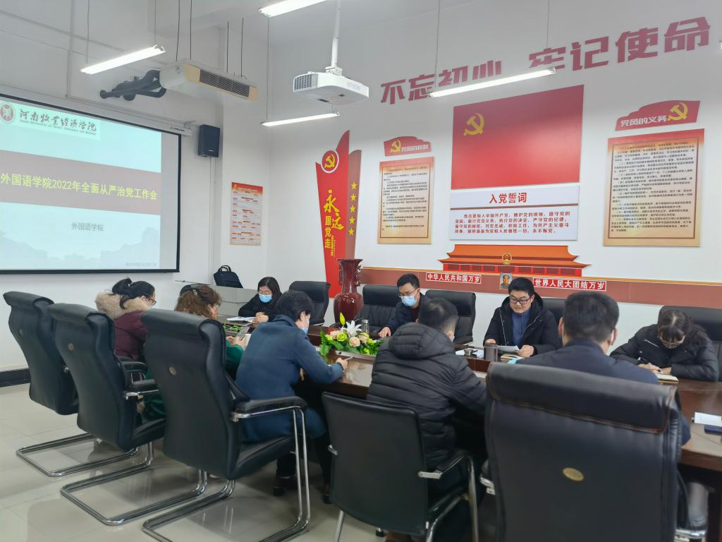 会议强调,今年是党的二十大胜利召开之年,也是学校推进“十四五”事业发展的关键一年,要以学习宣传贯彻党的二十大精神为主题主线,强化责任担当,切实尽职履责,把校党委的决策部署落到实处,发挥全面从严治党引领保障作用。一是要加强政治建设,以提高学院班子执政能力与水平为抓手,强化政治引领,压实党建责任;二是要深化思想建设,以推动教师主体作用发挥为抓手,坚定理想信念,筑牢思想根基,实现课程思政价值引领;三是要改进作风建设,以“能力作风建设年”活动为抓手,强化工作作风及教风、学风转变;四是要提升组织建设,以样板党支部创建为抓手,发挥基层党组织战斗堡垒作用,提升教工党支部战斗力、凝聚力;五是要坚持党风廉政建设,以省委巡视整改为抓手,强化“一岗双责”,驰而不息正风肃纪,全面加强党风廉政教育。