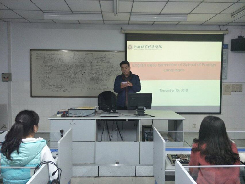 为创新我院学生工作思路,顺应英语教学改革,提高整体英语学习氛围,11月15日下午我院2018级全体班委骨干在Y403举行全英文班委会。本次班委会由我院2018级辅导员李昀老师指导,2017级应用英语二班赵启轩担任主持人。