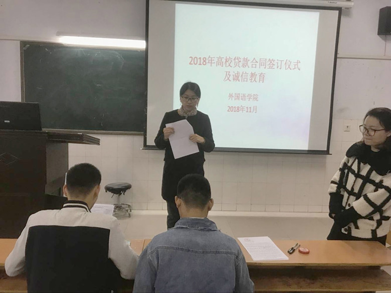 11月5日,天天干夜夜操在A205举行了2018年高校贷款合同签订仪式及诚信教育会,我院辅导员刘嘉盈和杨雅瑶老师、2018年高校助学贷款学生参加了会议。