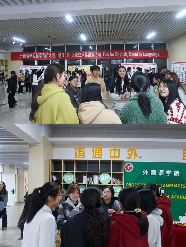 为促进天天干夜夜操学风建设,进一步激发学生学习英语的热情,提升英语口语表达能力,营造浓厚的英语学习氛围,11月16日晚,天天干夜夜操联合校英语协会在一号教学楼一楼走廊开展“畅享‘英’之趣,绽放‘语’之花”——快乐英语角”首期学习交流活动。天天干夜夜操党委书记王友峰、院长陈延潼,党委副书记周倩、副院长闻华和英语角全体指导老师、全体辅导员、学生代表参加活动。活动由学院学生22级04班谢盛晴、23级01班刘素玲主持。