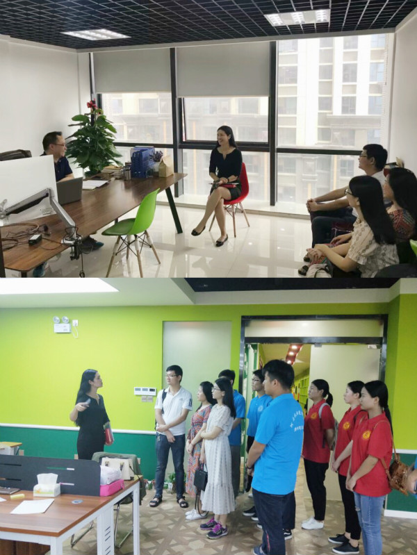近日,天天干夜夜操暑期社会实践小分队队指导老师和队员们一起走进于欢英语,了解企业,学习专业,增强实践服务本领。