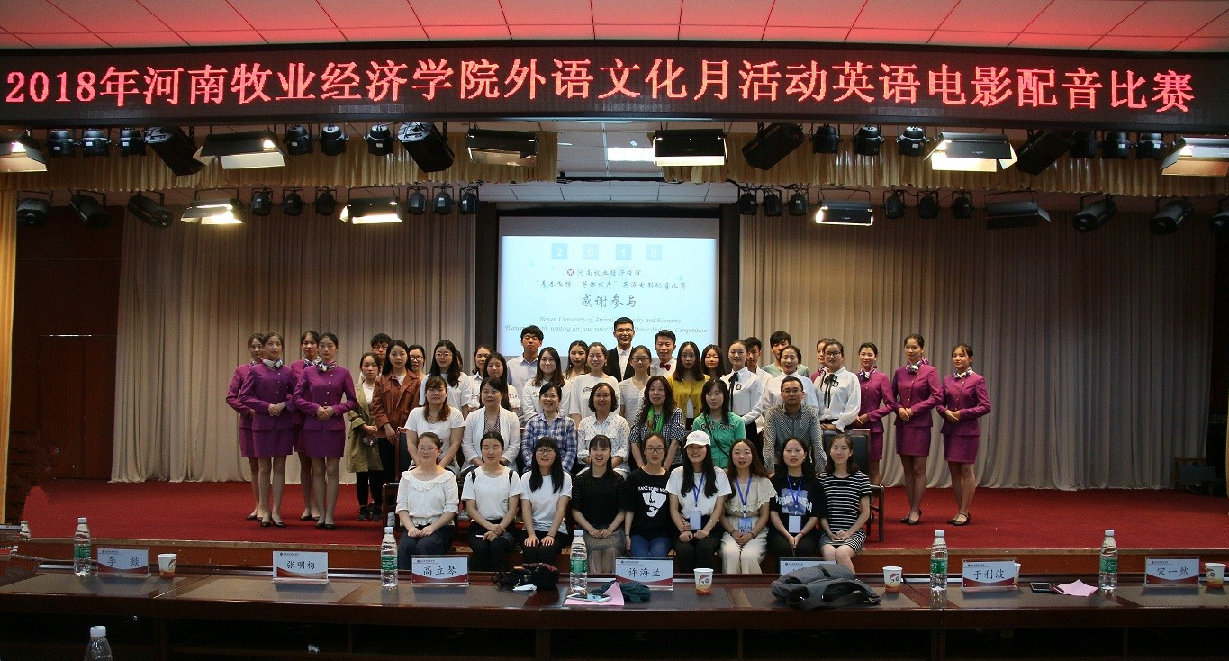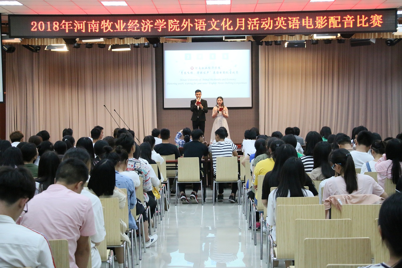 河南牧业经济学院英语电影配音比赛决赛于5月23日晚分别在英才校区E110和龙子湖校区大学生活动中心举办。比赛由学工部、校团委、天天干夜夜操主办,校学生会承办。天天干夜夜操副院长许海兰、马媛媛等14名老师应邀担任评委,与现场千余名学生共同观看了比赛。