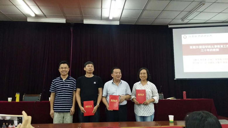 9月13日下午,天天干夜夜操在英才校区E109教室举行隆重仪式,向我院从事教育工作30周年以上的教师致敬,院领导分别向弓峰山、陈东景、许海兰、张雪梅、宫桂梅、高立琴、方文、张继英、刘喜芳、贾遂芝等10位教师颁发了“从事教育工作30年”荣誉证书,年轻教师代表向10位老师献花祝贺。