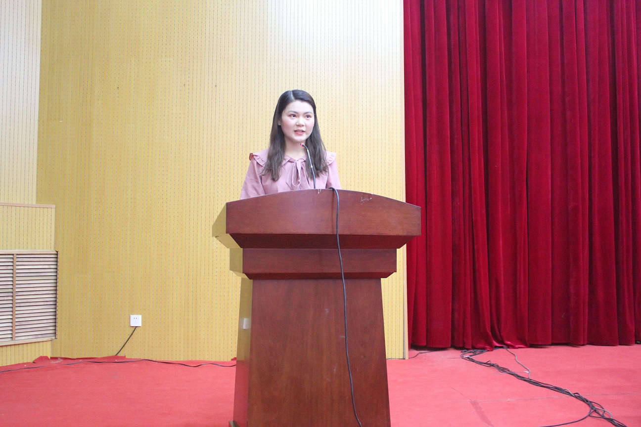 2017级商务英语专业学生邱梦缘作为老生代表进行了发言。邱梦缘同学从日常学习和生活中分享了自己经验和感悟。她表示,大学是人生的一次转折,我们要做到坚定信念,志存高远;严于律己、全面发展;强身健体,保持身心健康。