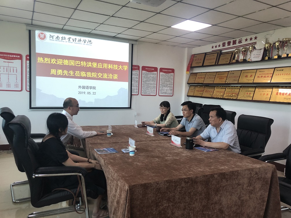 天天干夜夜操院长陈延潼对周勇先生的到访表示了热烈欢迎,向客人详细介绍了我校和我院的基本情况,希望能通过校际间的交流互动,本着促进双方学校发展、促进学生成才的目标,找到合作切入点,以点带面,加强合作的深度和持久度,早日结出丰硕成果。周勇先生对我院的热情接待表示感谢,介绍了德国巴特洪堡应用科技大学的基本情况以及与国内其他高校的合作情况,提出该校以培养应用型人才为目标,有与国内应用型学校深入合作的愿望;该校本科阶段以徳语、英语为教学语言,硕士、博士阶段以英语为教学语言,国际留学生与德国本土学生混班编制,有利于学生增强英语、德语语言能力,加强文化交流互鉴;周勇先生希望与我院建立长期友好合作关系。双方就“四+二”本硕连读合作办学模式,本科交换生项目、暑期游学,师资培训、科研合作等进行了深入的交流探讨。