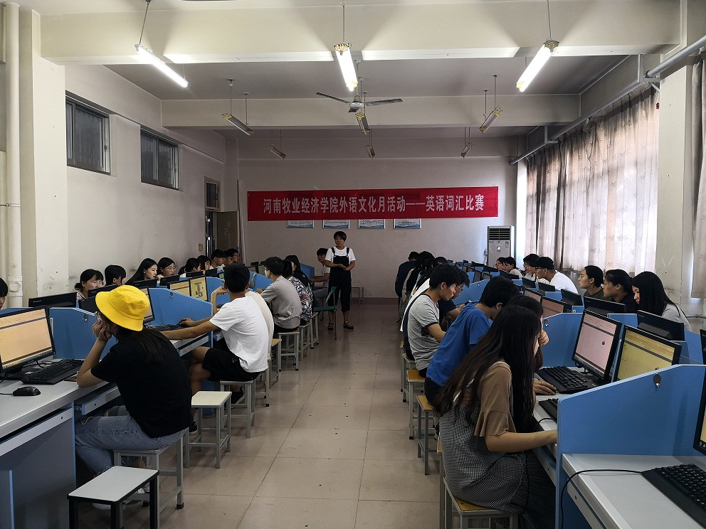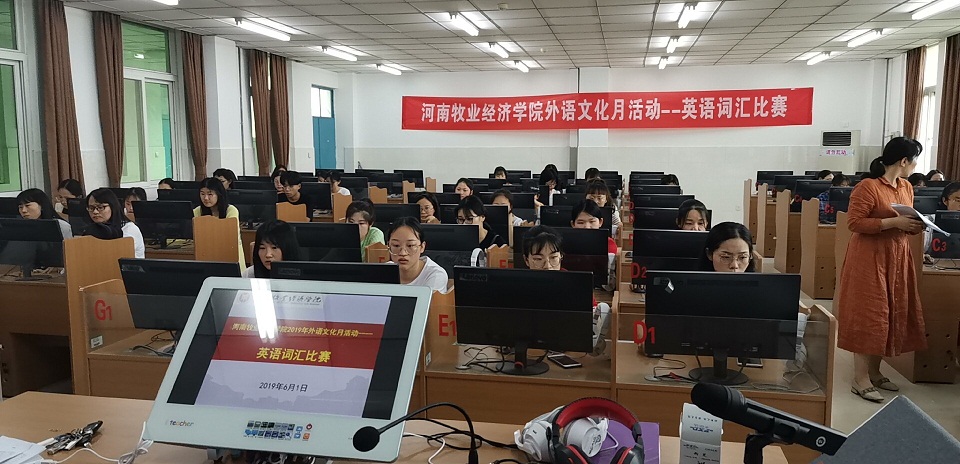 为了激发我校学生英语学习的积极性,培养我校大学生能够用英语进行专业学习和专业国际交流技能,按照《2019年河南牧业经济学院外语文化月活动》的安排,6月1日下午,我校成功举办了英语词汇比赛,全校两千余名学生在三校区同时参加了比赛。