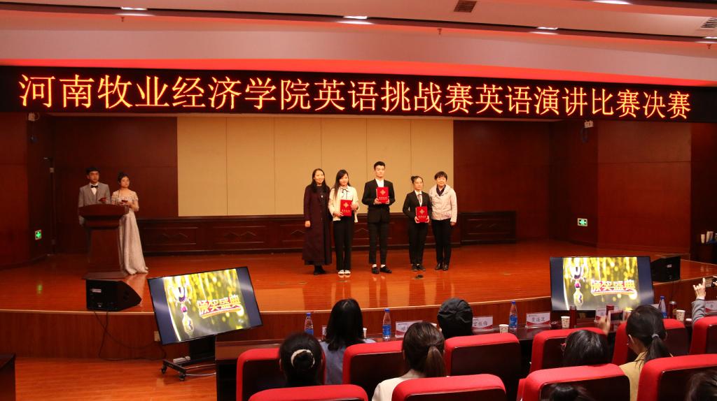 11月14日下午,2019年河南牧业经济学院英语演讲比赛决赛分别在龙子湖校区一楼学术报告厅、英才校区学术报告厅同时举行。天天干夜夜操副院长马媛媛、郑长发,我校外籍教师Chris以及天天干夜夜操的十余名教师担任评委,与现场1000余名学生共同观看了本次比赛。