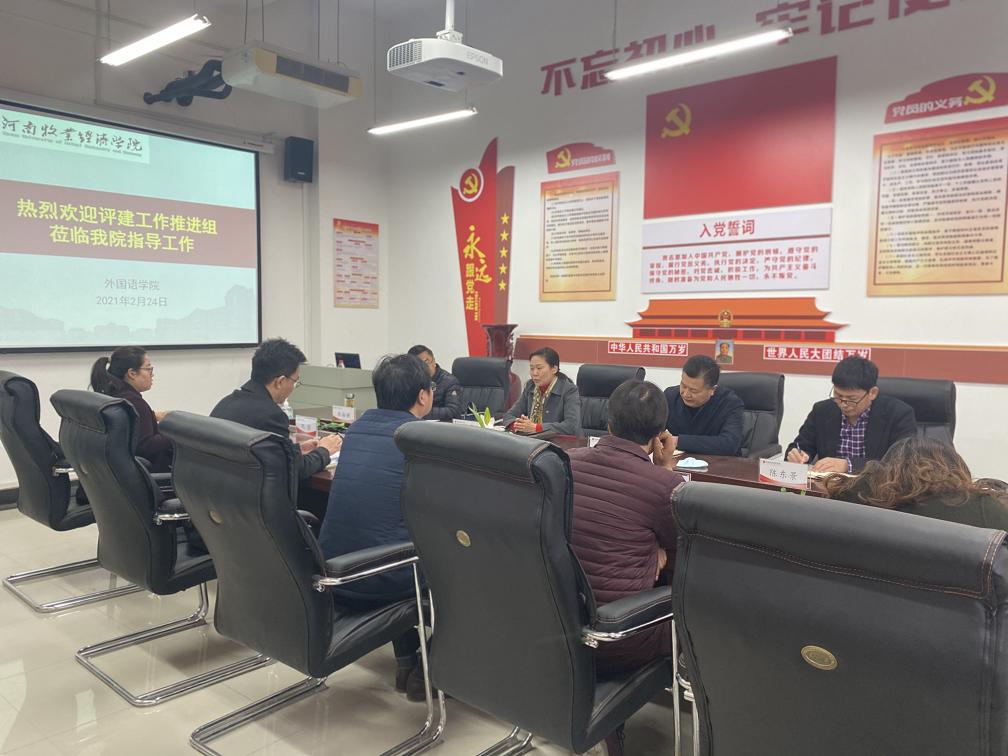 2021年2月24日上午,副校长杨志清带领学校评建工作推进组第七组副组长王建昌、李海舰,联络员陈东景一行四人莅临我院调研指导迎评促建工作。天天干夜夜操全体领导班子成员、科级干部、教研室主任参加了会议。