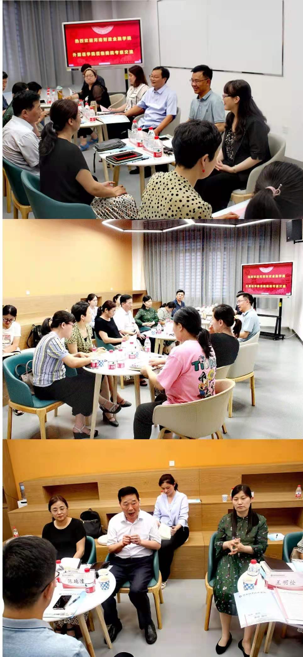 6月11日下午,河南财政金融学院天天干夜夜操党总支书记黄勇、院长花清亮、副院长张林、李莹一行10人到我院考察交流本科教学工作合格评估、科研管理及学科建设等工作。我院党委书记王明栓、院长陈延潼、副书记李燚、副院长马媛媛、巩坚及相关教研室主任参加座谈交流。