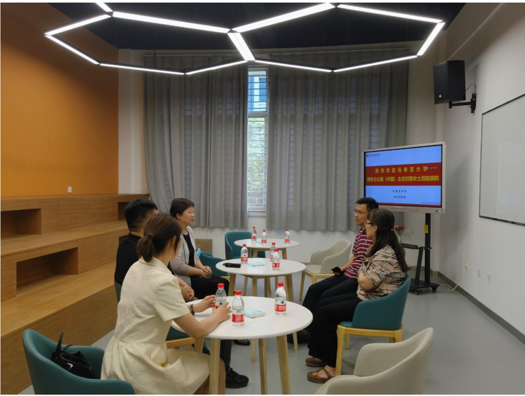 7月1号下午,马来亚大学境外办公室(中国)主任、马来西亚大学中国申报中心主任刘蓉女士到我院交流洽谈合作事宜,我院院长陈延潼、副院长马媛媛热情接待刘蓉主任一行。