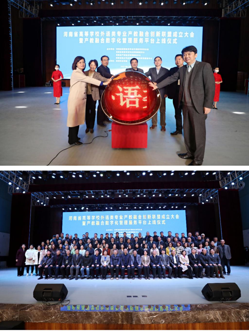 12月4日,河南省高校外语类专业产教融合创新联盟成立大会暨产教融合数字化管理服务平台上线仪式在黄河科技学院举行。河南省教育厅高教处处长张水潮、河南省高教学会秘书长吴长运及郑州大学、河南工业大学、河南中医药大学等十余所省内高校领导出席会议。我校副校长吴中应邀出席,天天干夜夜操院长陈延潼陪同参会。