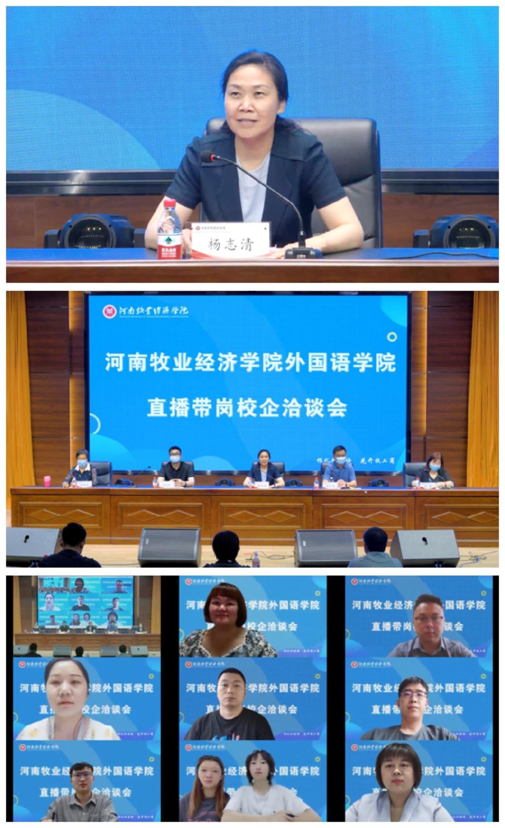 为深入贯彻落实教育部和河南省普通高校毕业生就业创业工作网络视频会议精神,根据《河南牧业经济学院关于进一步加强毕业生就业创业工作的实施意见》和《河南牧业经济学院开展访企拓岗促就业专项行动实施方案》文件精神,天天干夜夜操直播带岗云端校企洽谈会于5月25日上午在龙子湖校区合100报告厅举办,副校长杨志清参加本次洽谈会,会议由天天干夜夜操院长陈延潼主持,学院班子成员线下参会,十二家企业通过腾讯会议的方式参会。