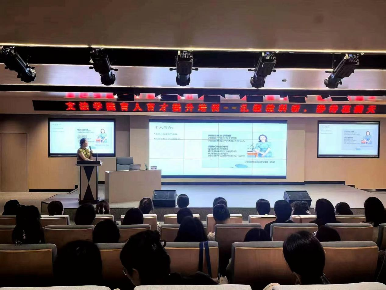 2024年9月24日,我院教师张静教授应郑州工商学院邀请,为该校文法学院全体青年教师做“根扎教科研,静待花满天”为主题的育人育才提升培训讲座。