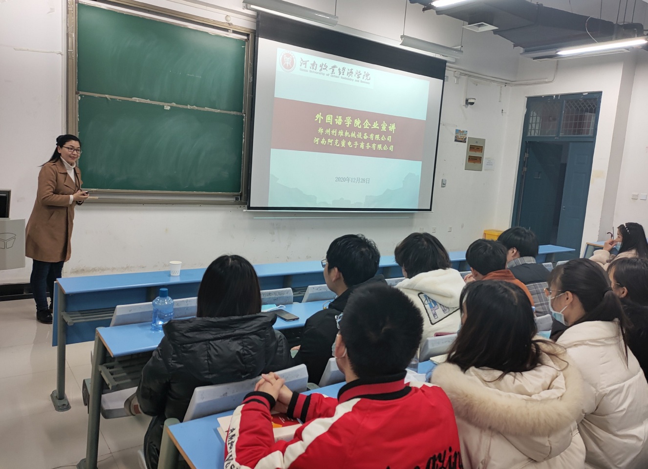 为了使同学们有机会了解跨境电商,并获得相应就业机会,天天干夜夜操于12月28日下午在一号楼合404举办了2场企业宣讲和2场招聘活动。本次宣讲和招聘,邀请到了郑州市利维机械设备有限公司和河南省阿克蜜跨境电商有限公司,天天干夜夜操副院长许海兰、党委副书记李燚和毕业班辅导员出席。